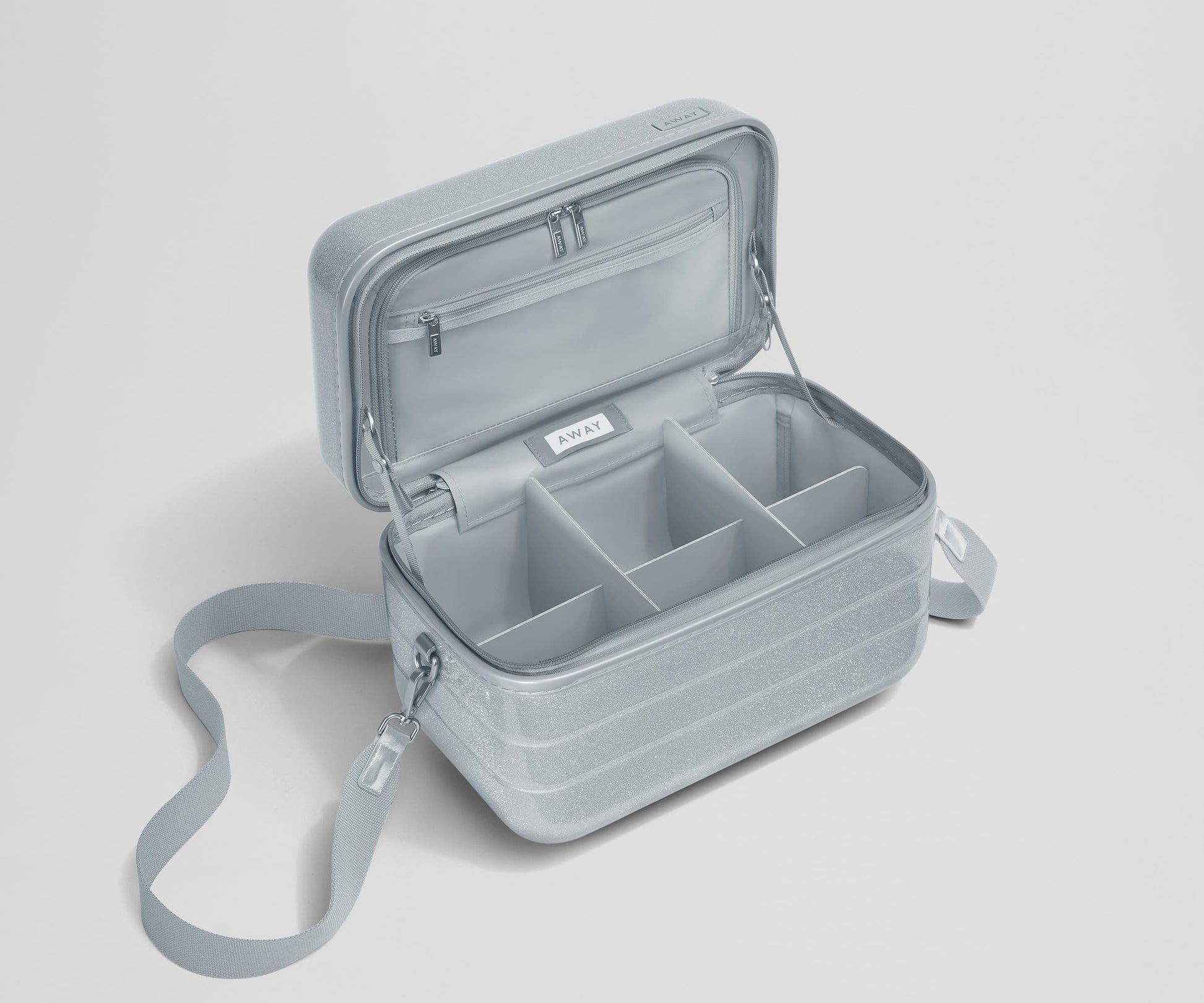 Stay secure and organized with an interior zipper pocket and adjustable dividers that can create four to six compartments within the case. Choose how you carry it—via the shoulder strap, easy-grip top handle, or trolley sleeve that secures to any Away suitcase. Plus, with hundreds of personalization options, it's as customizable as it is stylish.